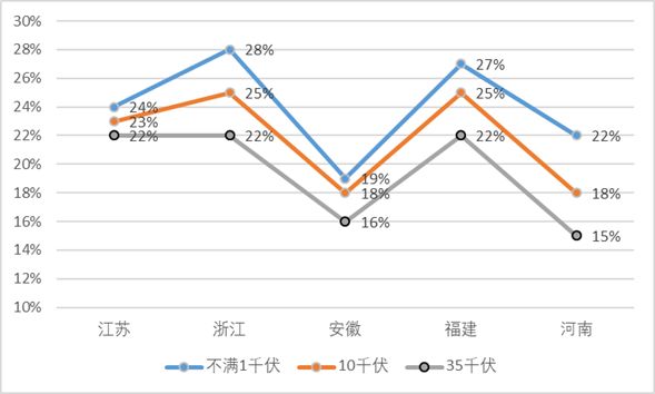 華東六省市不同電壓等級(jí)輸配電價(jià)(元/千瓦時(shí))△