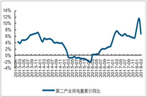 2018年1-3月二產(chǎn)累計(jì)用電量同比增長(zhǎng)6.7%