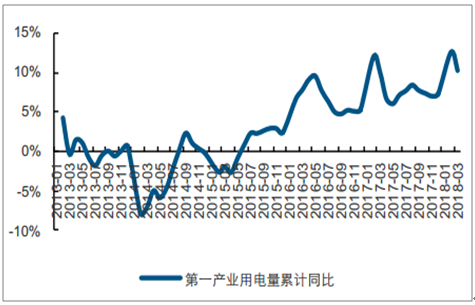 2018年1-3月一產(chǎn)累計(jì)用電量同比增長(zhǎng)10.3%