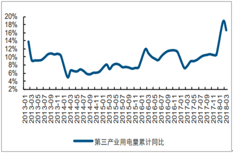 2018年1-3月三產(chǎn)累計(jì)用電量同比增長(zhǎng)16.7%