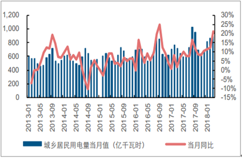 2018年1-3月居民累計(jì)用電量同比增長(zhǎng)17.2%