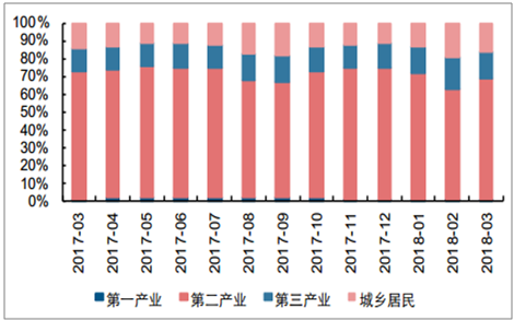 2018年3月各產(chǎn)業(yè)用電結(jié)構(gòu)