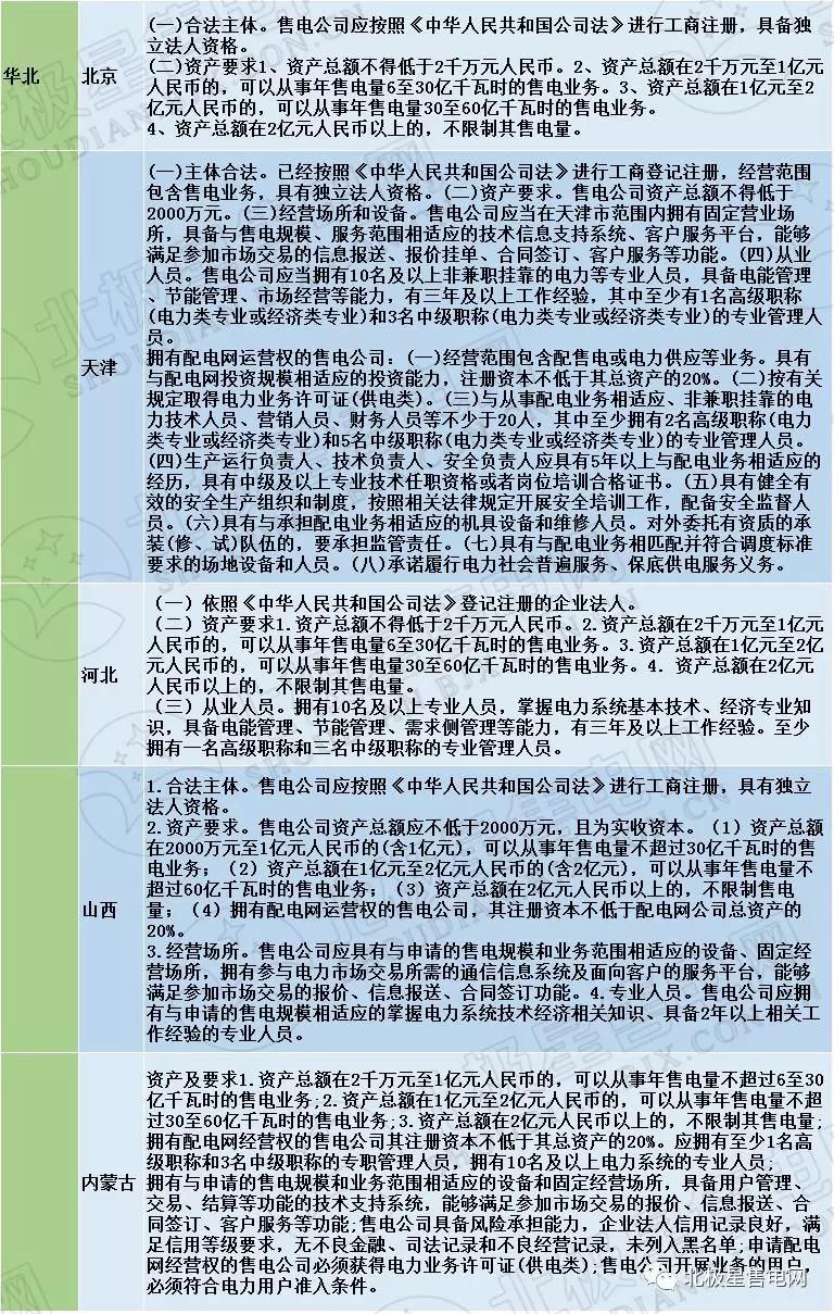 一起來看看各省市對售電公司的準入都有哪些詳細規(guī)定。