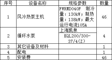 技術(shù)方案:項(xiàng)目采用空氣源熱泵供暖技術(shù)。選用46臺(tái)風(fēng)冷渦旋式熱泵機(jī)組為小區(qū)居民供暖。