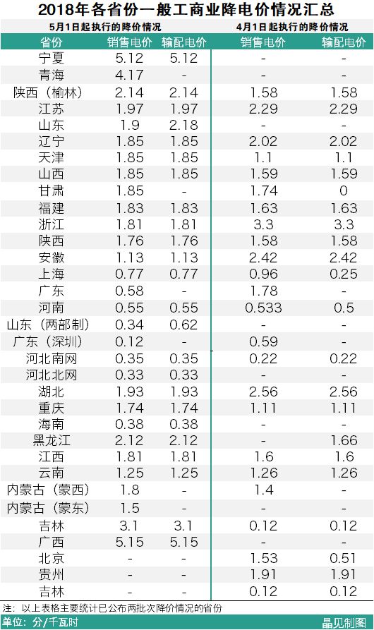所以,再來回顧一下今年各省調(diào)降一般工商業(yè)電價(jià)的力度吧,看看就電價(jià)來說,哪些省份降得最用力的。