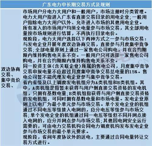在我國(guó)的電力市場(chǎng)中,將日以上的交易稱為中長(zhǎng)期交易,將日前及日以內(nèi)的交易稱為現(xiàn)貨交易。除云南擁有日前市場(chǎng)以外,現(xiàn)行的都是電力中長(zhǎng)期交易,廣東目前的交易方式及規(guī)則如下: