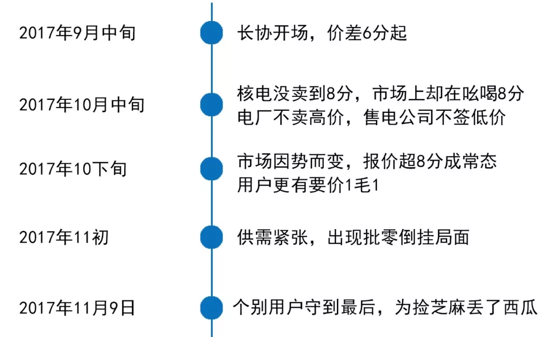 讓我們先回顧一下2018年的廣東長(zhǎng)協(xié):開(kāi)場(chǎng),價(jià)差就6分起;報(bào)價(jià)節(jié)節(jié)攀升,用戶胃口被吊大;到10月下旬報(bào)價(jià)超8分成為常態(tài),更有用戶要價(jià)到1毛1,大有市場(chǎng)失控之勢(shì);結(jié)果真正收官時(shí),許多批零倒掛,許多用戶守到最后卻竹籃打水。一些因讓利超過(guò)能力所及的售電公司只能撕毀協(xié)議,丟了信譽(yù),購(gòu)售電雙方都損失不小。