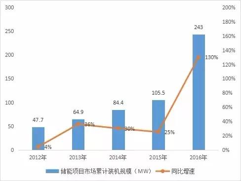 根據(jù)相關(guān)統(tǒng)計數(shù)據(jù),截至2016年底,我國儲能項目市場(不含抽水蓄能、壓縮空氣及儲熱)累計裝機規(guī)模243MW;2017年更是儲能產(chǎn)業(yè)飛速發(fā)展的一年,從2016年到2017月底,我國新增在建和投運的電化學儲能裝機規(guī)模達到1.35GW。