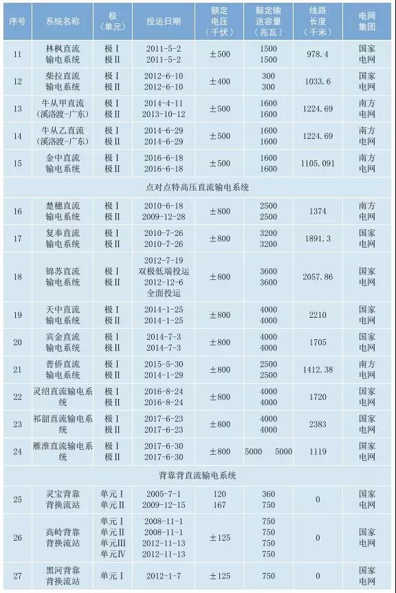 2017年在運直流輸電系統(tǒng)基本情況