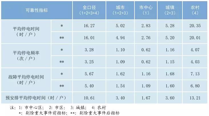 2017年全國平均供電可靠率為99.814%,同比上升了0.009個百分點;用戶平均停電時間16.27小時/戶,同比減少了0.84小時/戶,用戶平均停電頻率3.28次/戶,同比減少了0.29次/戶。