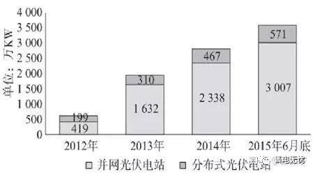 中國分布式光伏電站起步較早,2002年,國家提出“送電到鄉(xiāng)工程”,揭開了分布式光伏發(fā)電的序幕。2009年開始,中國通過“金太陽”工程和“光伏建筑一體化”工程兩項措施,以投資補貼方式使分布式光伏發(fā)電得到了迅猛的發(fā)展。截至2015年6月底,光伏電站裝機容量達3578萬KW,其中分布式光伏電站裝機 容量達571萬KW,占比16.0%。