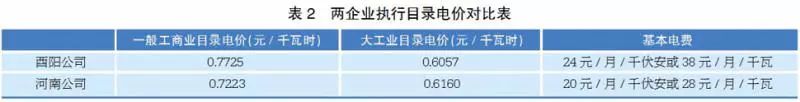 通過表2可看出,在一般工商業(yè)目錄電價上酉陽公司比河南公司高出0.0502元/千瓦時,大工業(yè)目錄電價上酉陽公司比河南公司低0.0103元/千瓦時,但在基本電費方面河南公司比酉陽公司低4元/月/千伏安或10元/月/千瓦。
