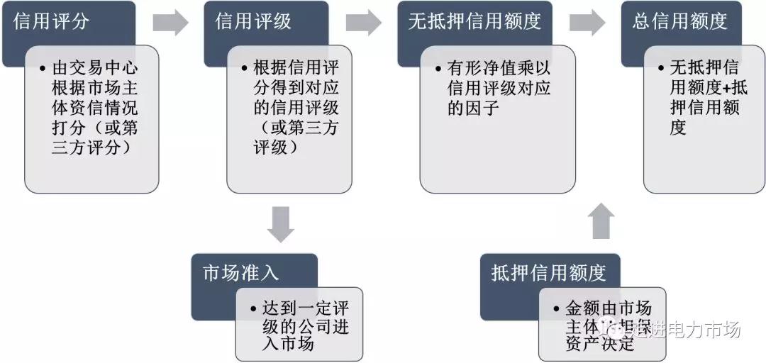 從上述方案看,其中提及的信用體系的建設(shè)也是停留在信用評估的部分,即僅考察市場主體的償債能力。其中通過市場主體的市場行為進(jìn)行信用評價是較為符合電力市場特點的,但是對于考察市場主體在后續(xù)市場交易中的風(fēng)險,并以此為基礎(chǔ)反過來監(jiān)督市場主體的市場交易行為(如對其交易規(guī)模進(jìn)行限制),則沒有在方案中提到。而這也是電力市場信用體系的一個重要內(nèi)容。