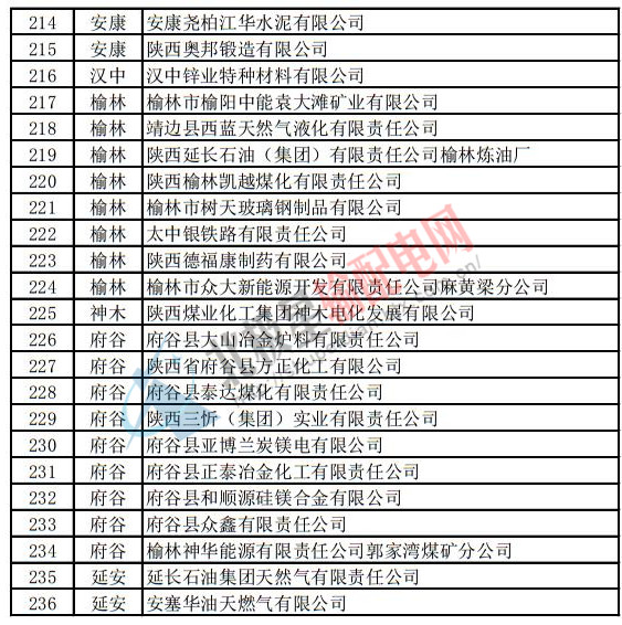 陜西2016年電力直接交易電力大用戶和發(fā)電企業(yè)名單