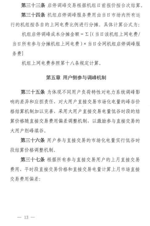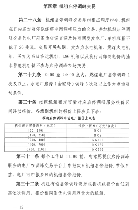 國家能源局福建監(jiān)管辦日前印發(fā)了《福建省電力輔助服務(wù)(調(diào)峰)交易規(guī)則(試行)》。規(guī)則試行于福建省電網(wǎng)開展的電力輔助服務(wù)(調(diào)峰)交易。本規(guī)則與《華東區(qū)域并網(wǎng)機(jī)組輔助服務(wù)管理實(shí)施細(xì)則》相銜接,不重復(fù)考核或