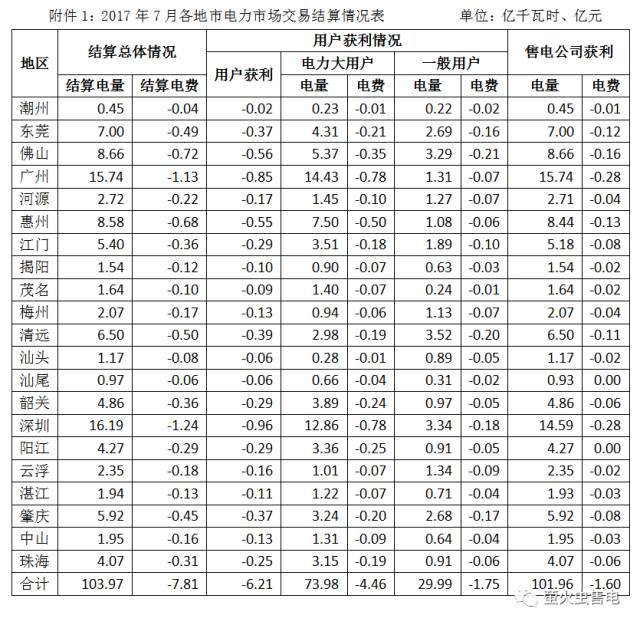 廣東電力交易中心發(fā)布了《關(guān)于2017年7月份廣東電力市場結(jié)算情況的通告》,相關(guān)內(nèi)容如下:1整體情況7月共有60家電廠(共69個(gè)交易單元)、8家大用戶、123家售電公司參與批發(fā)市場交易。全市場計(jì)劃用電量 104 20 億千