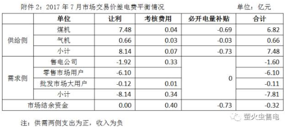 7月電廠市場交易總價(jià)差電費(fèi)8.14億元。