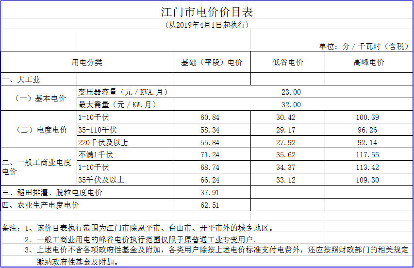近日,廣東省發(fā)布了關(guān)于電網(wǎng)企業(yè)增值稅稅率調(diào)整相應(yīng)降低我省一般工商業(yè)電價(jià)的通知,粵發(fā)改價(jià)格〔2019〕138號,詳情如下: