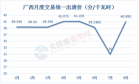 近日,廣西8月份的月競成交結(jié)果出爐,成交電量77887萬千瓦時(shí),成交價(jià)格40 995分 千瓦時(shí),價(jià)格環(huán)比上漲1毛!回顧今年廣西的整體月競情況,7