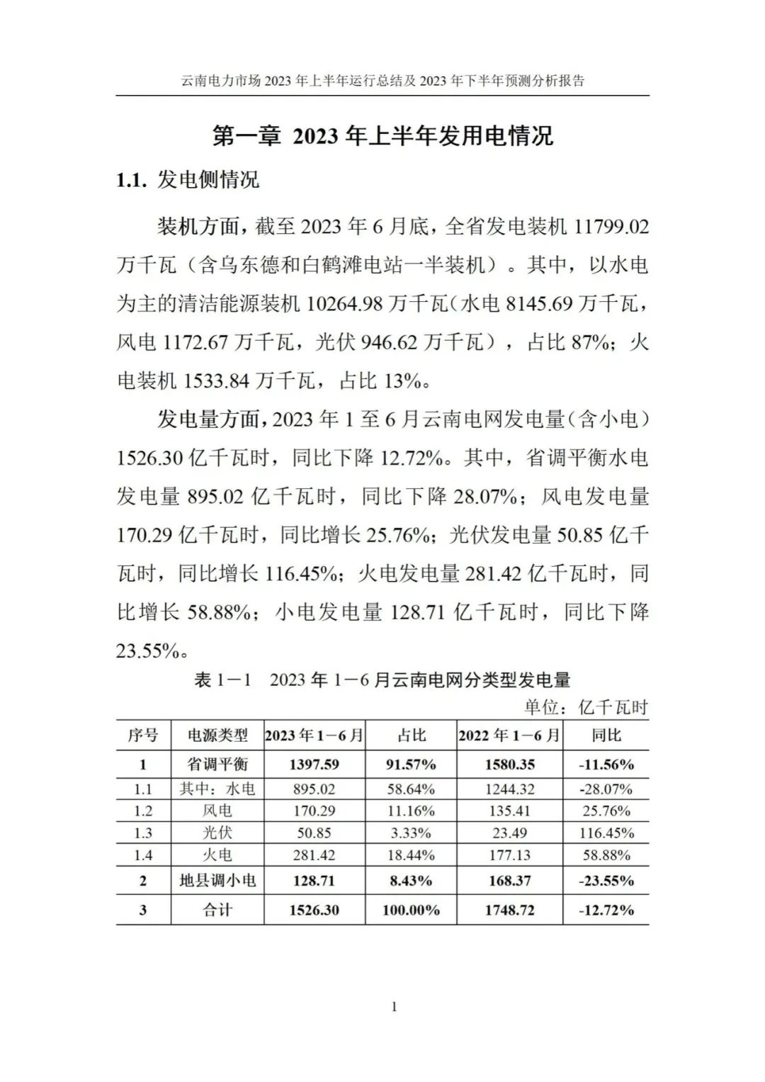 日前昆明電力交易中心發(fā)布云南電力市場2023年上半年運(yùn)行總結(jié)及2023年下半年預(yù)測分析報告。報告顯示: