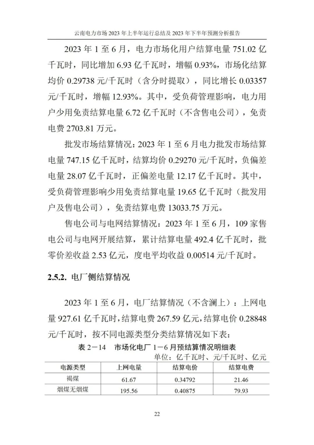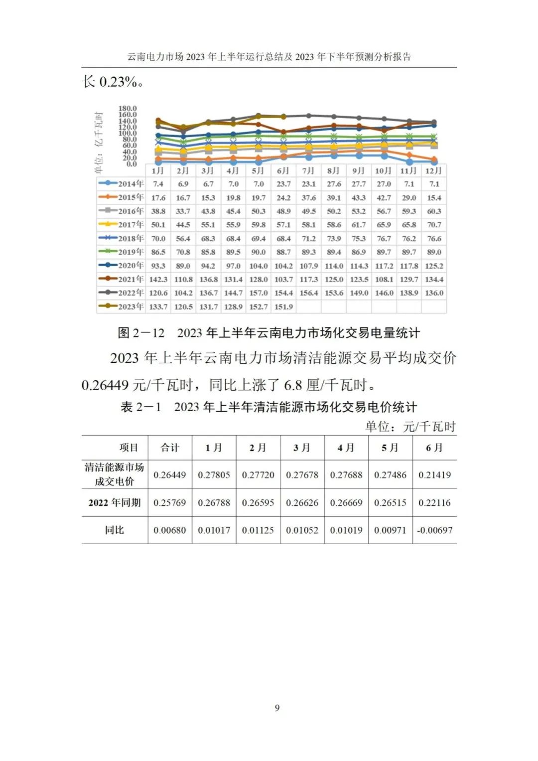 云南電力市場2023年上半年運(yùn)行總結(jié)及2023年下半年預(yù)測分析報告:上半年共成交電量819.46億千瓦時