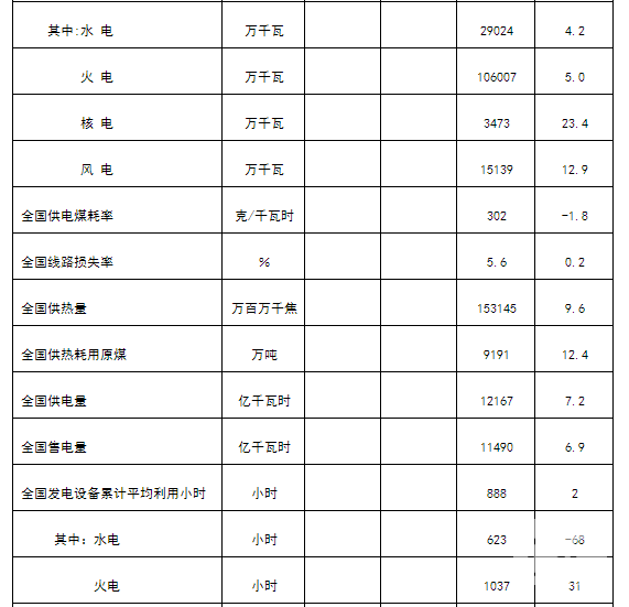 附:全國(guó)電力工業(yè)統(tǒng)計(jì)數(shù)據(jù)