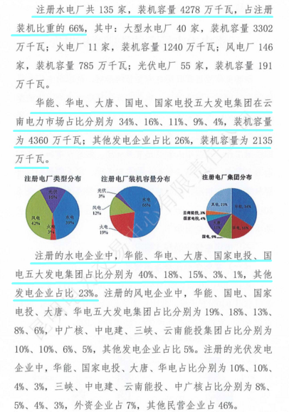 截止2017年4月30日,云南電力市場主體注冊第一階段工作已基本結(jié)束。交易中心完成注冊電廠347家,合計裝機容量6495萬千瓦。華能、華電、大唐、國電、國家電投五大發(fā)電集團在云南電力市場占比分別為34%、16%、11%、