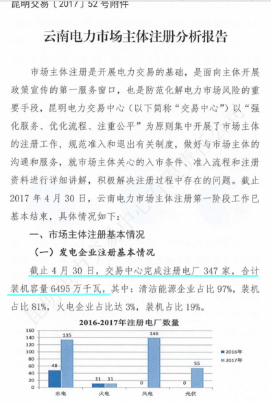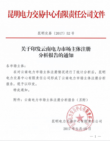 截止2017年4月30日,云南電力市場主體注冊第一階段工作已基本結(jié)束。