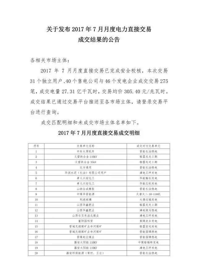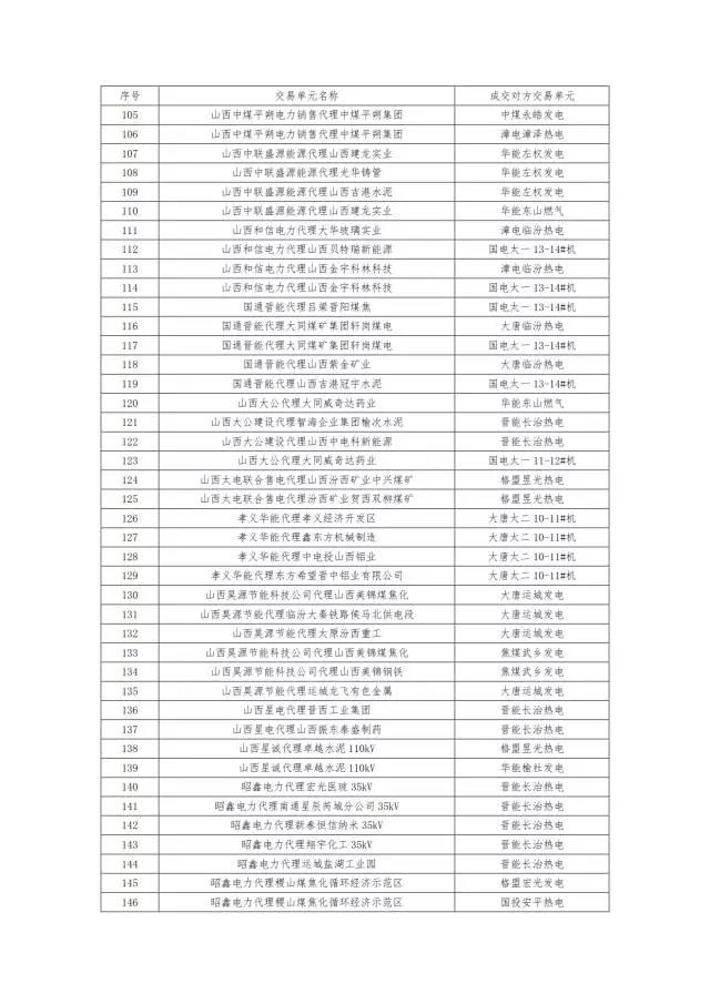 6月28日,不只是山東除了結(jié)果,山西7月月度電力直接交易的成交結(jié)果也同樣出爐。但是這份公告里的成交明細(xì),只有配對明細(xì),并沒有成交電量的明細(xì)。