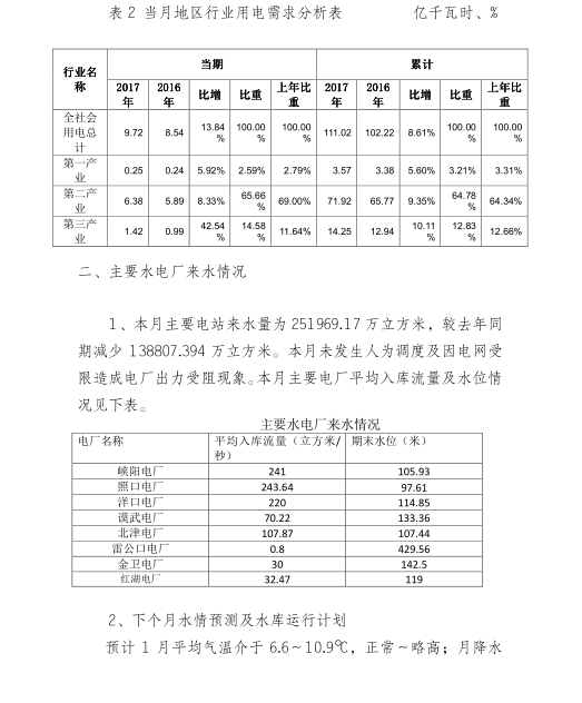 12月份,南平地區(qū)總購電量135062.56兆千瓦時,同比減少43.02%。1-12月累計購電3648340.42兆瓦時,同比減少26.74%。12月份,南平地區(qū)全社會用電量9.72億千瓦時,同比增長13.84%。1-12月累計用電量111.02億千瓦時,同比增長8.61%。原文如下: