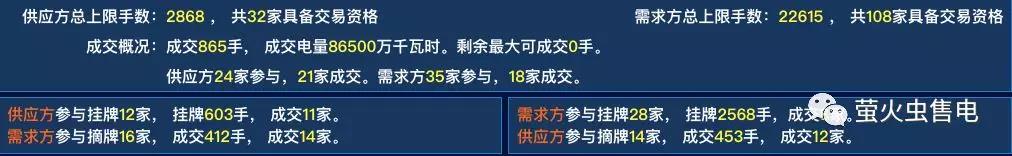供應方掛牌6944手,需求方摘牌成交6304手,成交平均價差為-33.73厘/千瓦時;