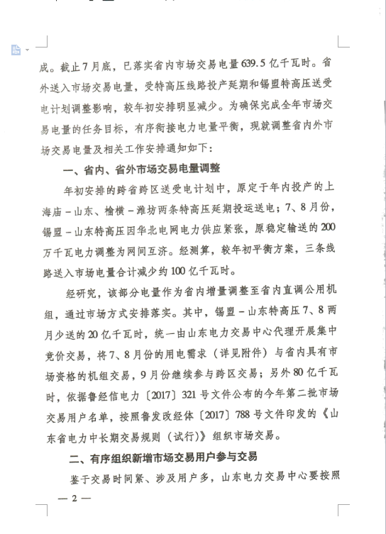 山東:1-7月省內(nèi)市場(chǎng)交易電量639.5億千瓦時(shí)!