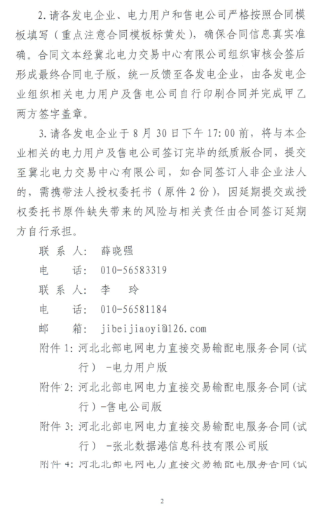 冀北地區(qū)(區(qū)內(nèi))8月電力直接交易輸配電服務(wù)合同開始簽訂