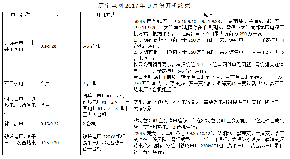 調(diào)度提供的2017年9月機(jī)組運(yùn)行約束及斷面受限信息詳見附件。