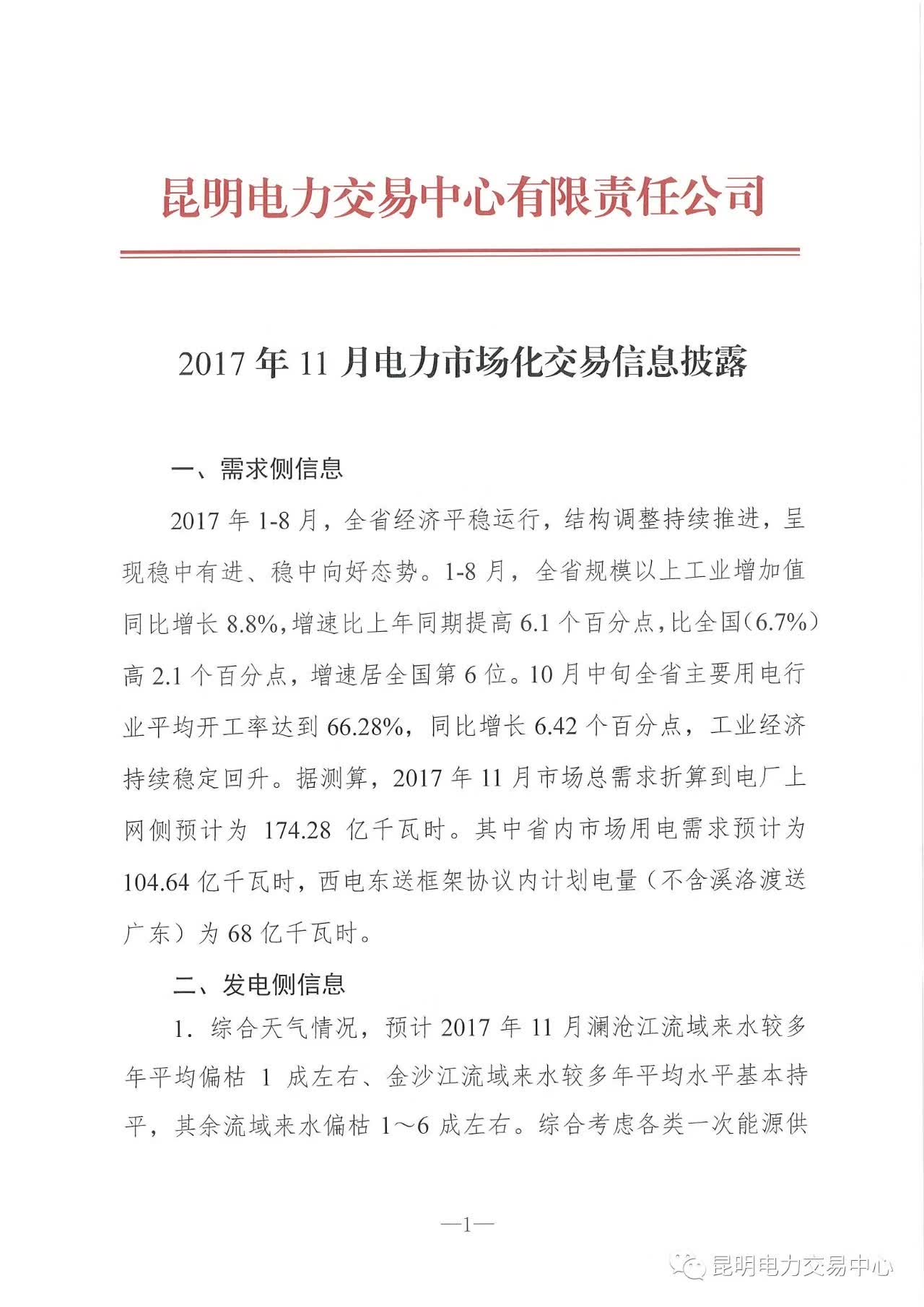 【數(shù)據(jù)】2017年11月云南電力市場化交易分析