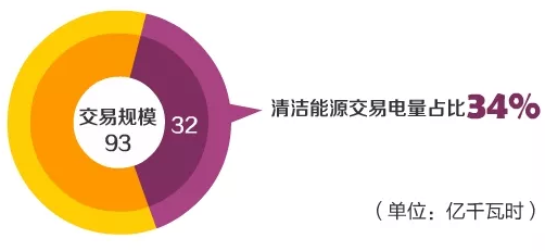 2017年10月,北京電力交易中心在交易平臺組織開展了11、12月市場化交易,交易規(guī)模93億千瓦時,其中,清潔能源交易電量約32億千瓦時,占比34%。