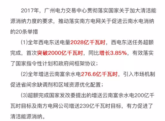 廣州電力交易中心日前發(fā)布了《2017年南方區(qū)域跨區(qū)跨省交易情況通報(bào)》,通知中稱,2017年西電東送電量2028億千瓦時(shí),西電東送任務(wù)超額完成,