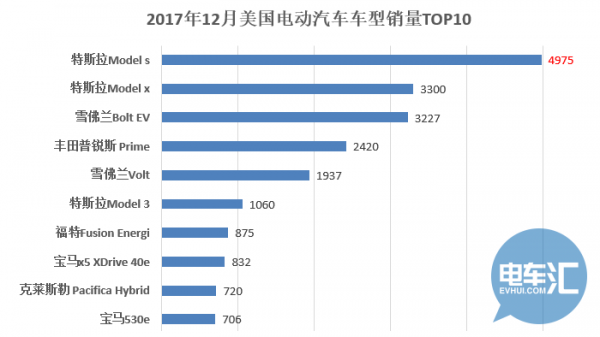 12月份對(duì)于很多車型來說,都實(shí)現(xiàn)了2017年月度銷量的突破。特斯拉Model S、Model X不出意外地實(shí)現(xiàn)了年終爆發(fā),Model 3交付量也在外界“唱衰”中達(dá)到1060輛,三款車型合計(jì)銷9,335輛;雪佛蘭主打車型Bolt和Volt銷量共計(jì)5,164輛;寶馬同樣取得了新進(jìn)展,多款車型銷量同時(shí)上揚(yáng);豐田Prius Prime也創(chuàng)下了2,420輛創(chuàng)紀(jì)錄的月份。