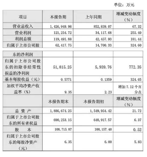 1廈門鎢業(yè):凈利潤達(dá)6.24億,同比變動(dòng)324.60%
