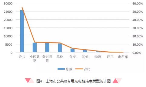上海市充換電設(shè)施站點(diǎn)分類分為:公共站點(diǎn)、公交站點(diǎn)、單位站點(diǎn)、小區(qū)共享站點(diǎn)、分時(shí)租賃站點(diǎn)、物流站點(diǎn)、出租車站點(diǎn)以及其他。截止2017年12月底,市級平臺(tái)顯示全市公共和專用充換電設(shè)施按照其站點(diǎn)類型的統(tǒng)計(jì)如圖4:(不包括私人充電設(shè)施)