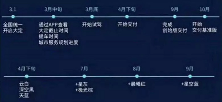 在正式啟動交車之前的3月1日,下訂單用戶需要繼續(xù)支付4萬元的購車款。3月份,準車主將可以試駕量產(chǎn)車型。