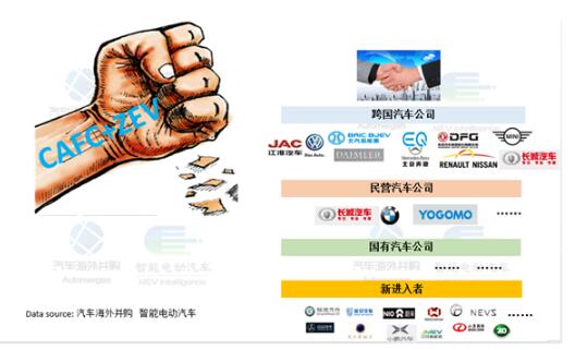 而以北汽新能源、長江汽車、奇瑞新能源、江鈴新能源、云度、知豆、蔚來、威馬、小鵬等為代表的已經(jīng)獲得獨(dú)立新建純電動生產(chǎn)資質(zhì)的企業(yè)或通過其他途徑過得資質(zhì)的造車新勢力,以及其他新能源資質(zhì)的申請者如特斯拉、FMC、博郡、唐駿、河南森源、時(shí)風(fēng)、車和家、游俠、小鵬、奇點(diǎn)、力帆、比克、云南德動、昌河、上汽通用五菱等等,則會成為包括國有企業(yè)和跨國公司在內(nèi)各方合縱連橫、投資、代工、并購等的潛在對象。