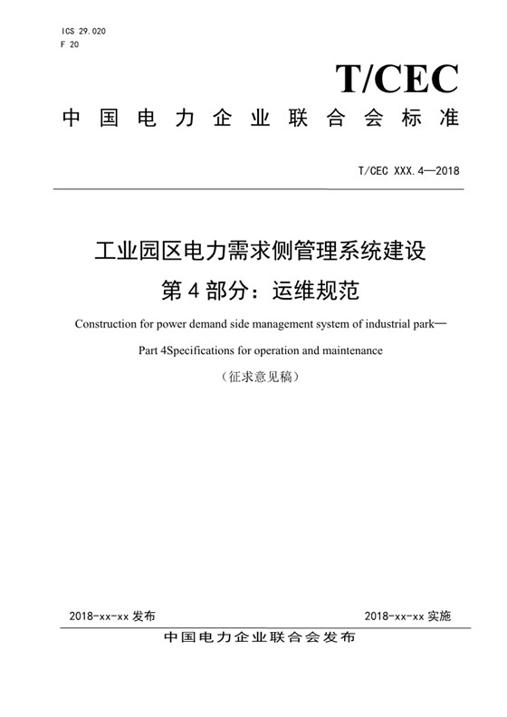 《工業(yè)園區(qū)電力需求側(cè)管理系統(tǒng)建設(shè) 第3部分:實(shí)施和驗(yàn)收規(guī)范》(計(jì)劃編號(hào)T CEC 20181071)、《工業(yè)園區(qū)電力需求側(cè)管理系統(tǒng)建設(shè) 第4部分:運(yùn)維規(guī)范》(計(jì)劃編號(hào)T CEC 20181072)、工業(yè)園區(qū)電力需求側(cè)管理系統(tǒng)建設(shè) 第5部分:評(píng)價(jià)規(guī)范》(計(jì)劃編號(hào)T CEC 20181073)已完成征求意見稿,現(xiàn)征求意見。