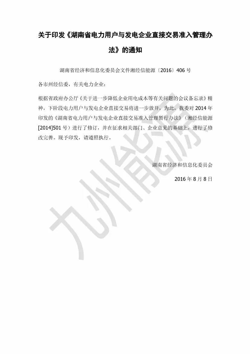 話不多說,直奔主題。(文章來源:售電星星 作者:姚楚立)1、20130926-湖南省人民政府辦公廳關(guān)于印發(fā)《湖南省電力用戶與發(fā)電企業(yè)直接交易試點(diǎn)工作方案》的通知 湘政辦發(fā)〔2013〕53號(hào)2、20141201-湖南省電力用