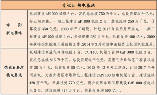 核電。建成海陽核電一期、榮成高溫氣冷堆示范項目;啟動榮成大型先進(jìn)壓水堆示范工程、商業(yè)化壓水堆和海陽核電二期、三期等項目建設(shè);加強潛在核電廠址資源的勘探和保護,啟動第三核電廠址前期工作。到2020年,建成核電裝機270萬千瓦。