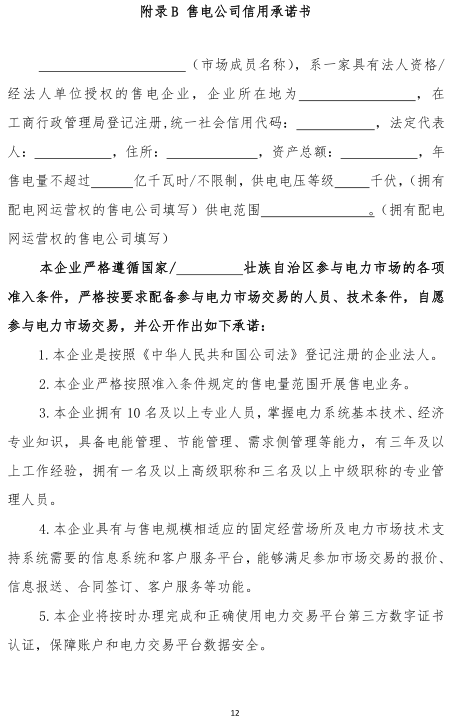 廣西電力交易中心日前發(fā)布了《廣西電力市場售電公司注冊規(guī)范(試行)》的通知,詳情如下:關(guān)于發(fā)布《廣西電力市場售電公司注冊規(guī)范(試行)》的通知各相關(guān)市場主體:為進(jìn)一步規(guī)范廣西電力市場售電公司的注冊管理,根據(jù)