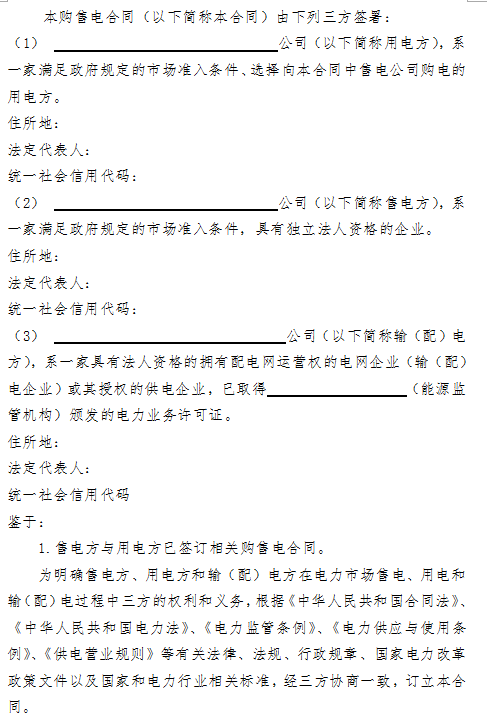 本網(wǎng)獲悉,國家能源局江蘇監(jiān)管辦日前發(fā)布了《售電公司與電力用戶購售電合同(示范文本)》《江蘇電網(wǎng)公司(輸配電公司)、售電公司、電力市場化零售用戶三方購售電合同(示范文本)》。各有關單位要在開展電力用戶直接