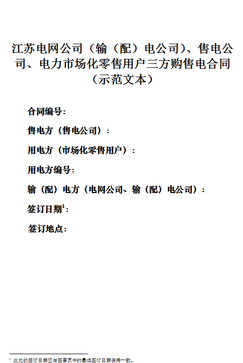 江蘇能源監(jiān)管辦印發(fā)兩個電力市場化交易合同示范文本