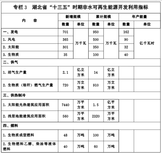 ——風(fēng)電。堅(jiān)持集中開(kāi)發(fā)與分散開(kāi)發(fā)相結(jié)合,加快推進(jìn)資源較為豐富、消納條件較好的隨州、孝感、恩施、襄陽(yáng)等地實(shí)現(xiàn)風(fēng)電規(guī)?;懈咝ч_(kāi)發(fā)利用,推動(dòng)風(fēng)能資源適宜、靠近負(fù)荷中心的分散式風(fēng)電項(xiàng)目建設(shè)。到2020年,新增風(fēng)電裝機(jī)容量365萬(wàn)千瓦,累計(jì)達(dá)到500萬(wàn)千瓦。