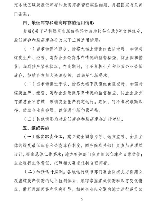 今日下午,國家發(fā)改委、能源局印發(fā)《關(guān)于建立健全煤炭最低庫存和最高庫存制度的指導(dǎo)意見(試行)》及考核辦法的通知。由于我國新能源與可再生能源發(fā)展仍需漫長過程,煤炭仍占我國能源主體地位,煤炭科學(xué)管理勢在